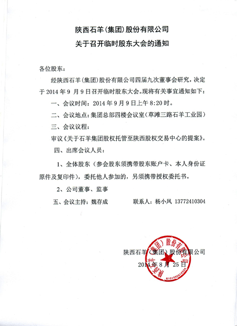 關(guān)于召開臨時股東大會的通知