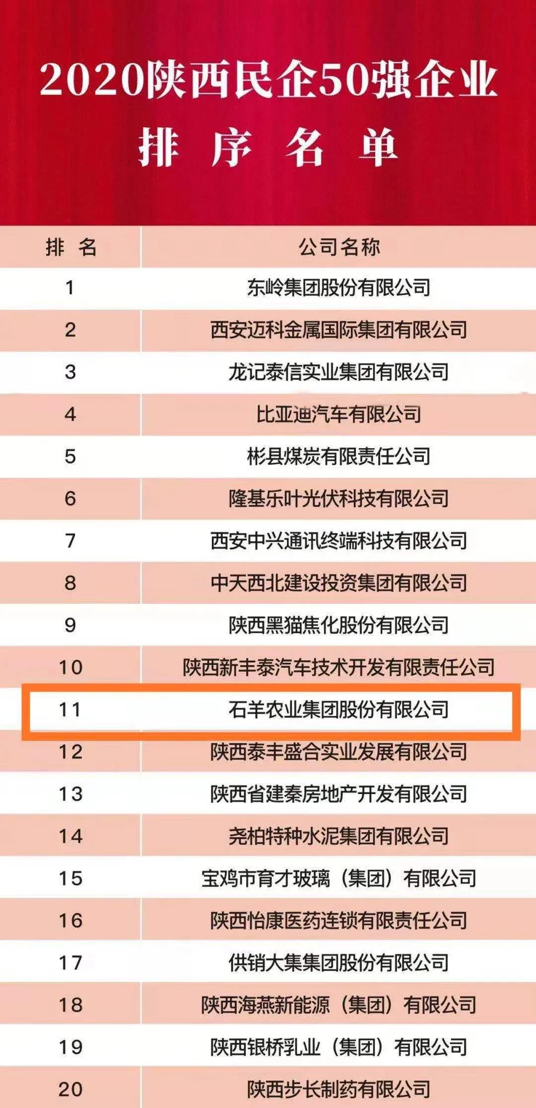 石羊集團(tuán)榮膺2020年“陜西百?gòu)?qiáng)企業(yè)”、“陜西民營(yíng)50強(qiáng)企業(yè)”稱號(hào),分別排名48位和11位,集團(tuán)營(yíng)業(yè)收入持續(xù)增長(zhǎng)。